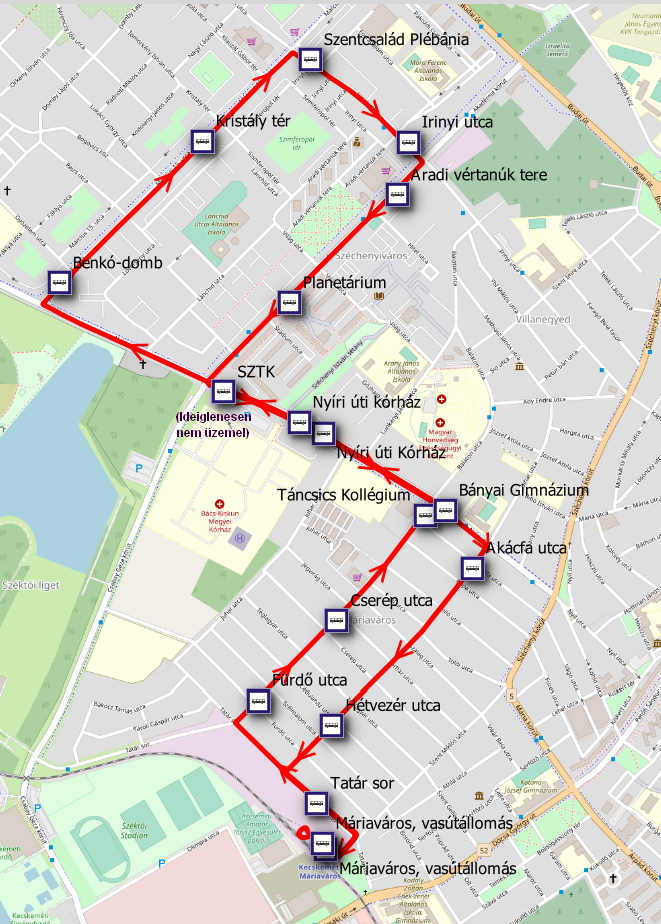 A helyi autóbusz és személyvonat közlekedés összehangolása, a továbbutazások biztosítása Kecskeméten belül is elengedhetetlen, így a Máriavárosi vasútállomástól új - vonathoz csatlakozó - helyi autóbusz vonal kerül meghirdetésre. A vonalon közlekedő járatok szintén a személyvonat menetrendjéhez igazodnak és a vasútállomás épületétől indulva a Tatársor - Jász utca - Nyíri út - Március 15. utca - Irinyi utca - Akadémia krt. - Nyíri út - Hétvezér utca - Tatársor útvonalon közlekednek.